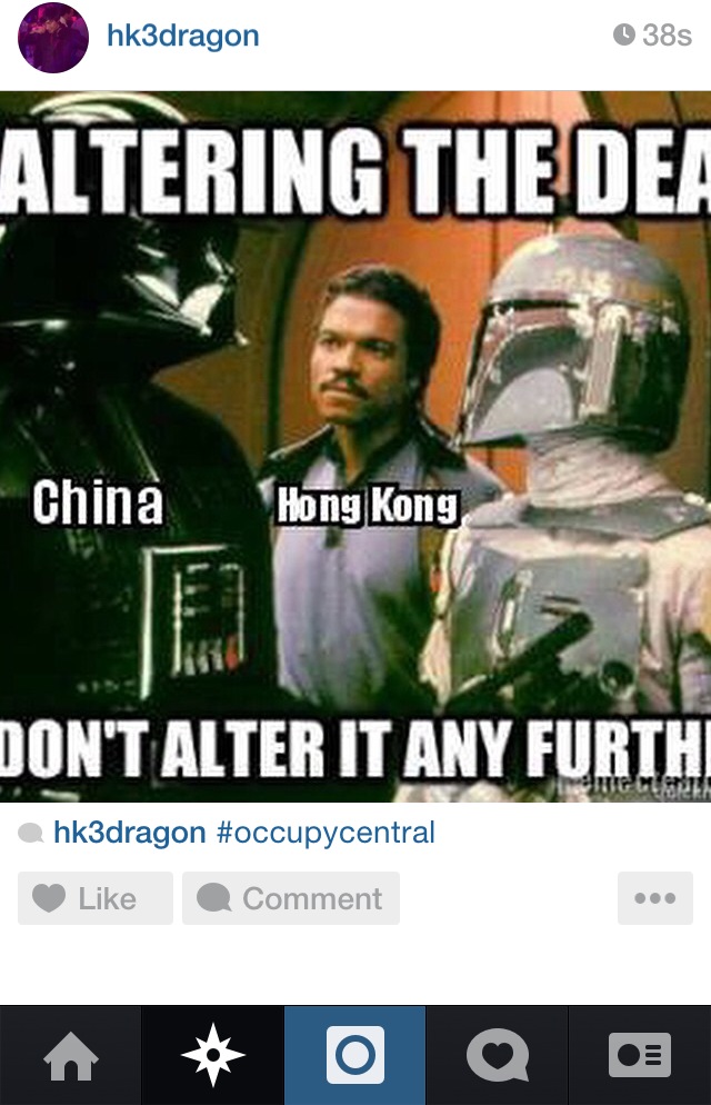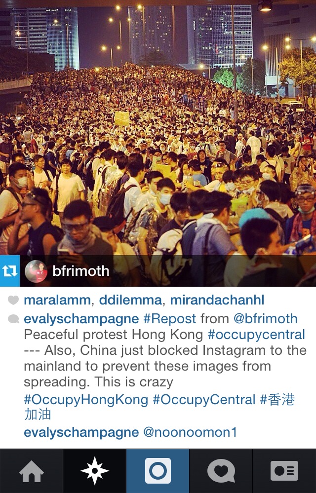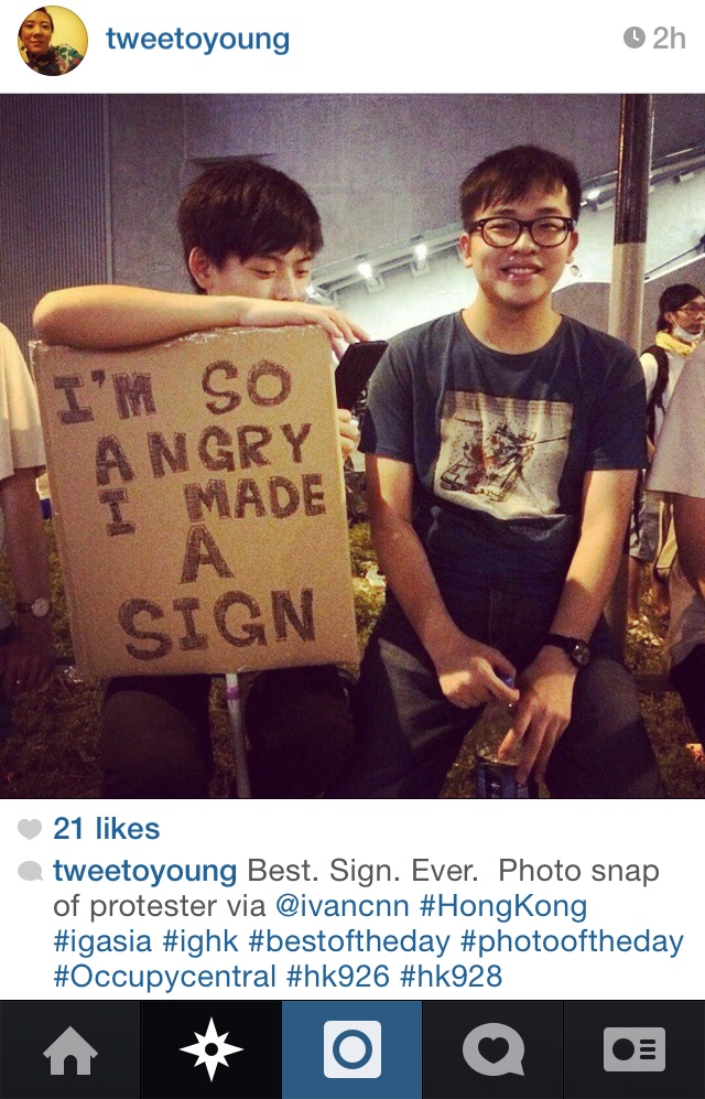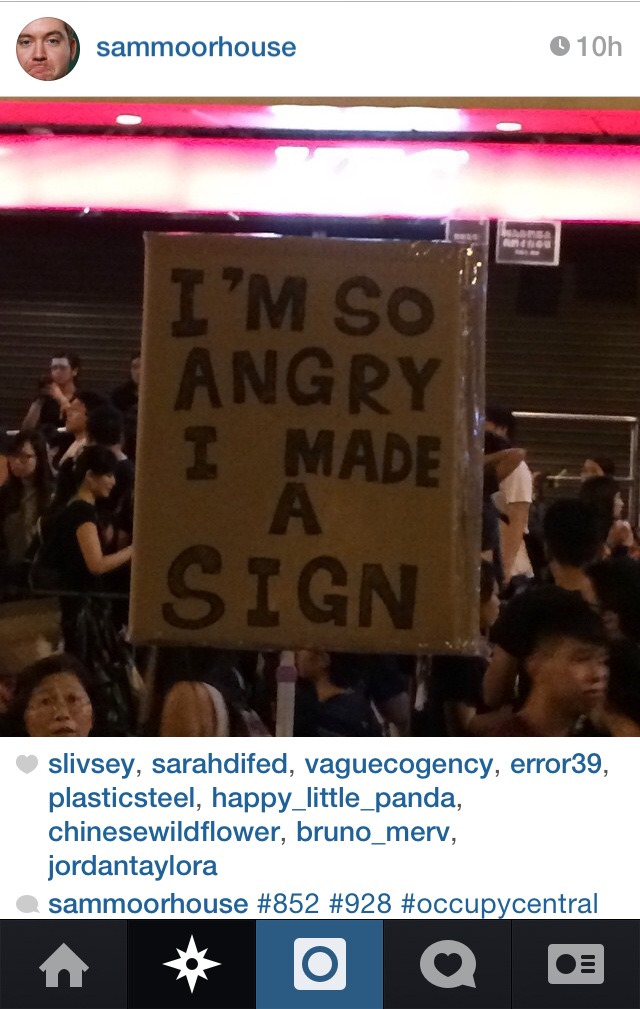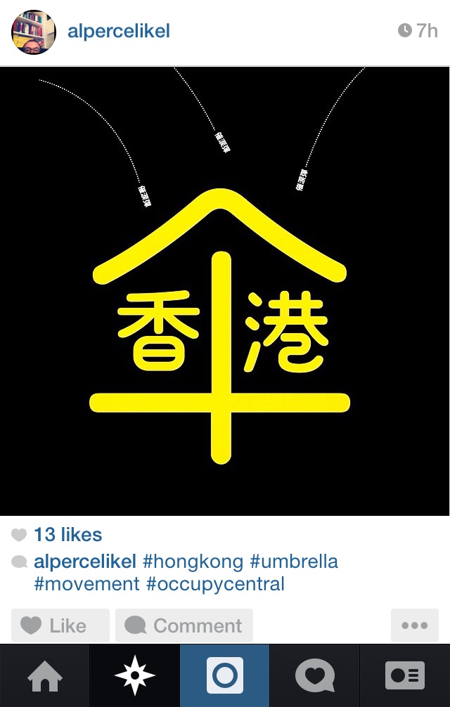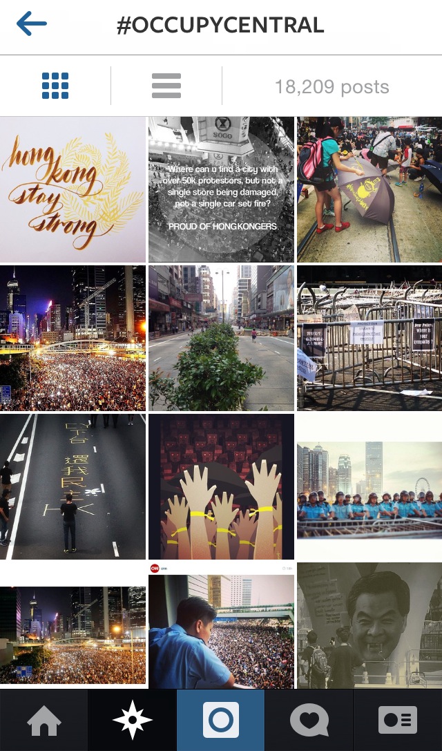 I manually track the #OccupyCentral tag on Instagram over 72hrs and attempt to thematize the visual emblems of social protests as mediated on social media. [Note: Image Heavy]