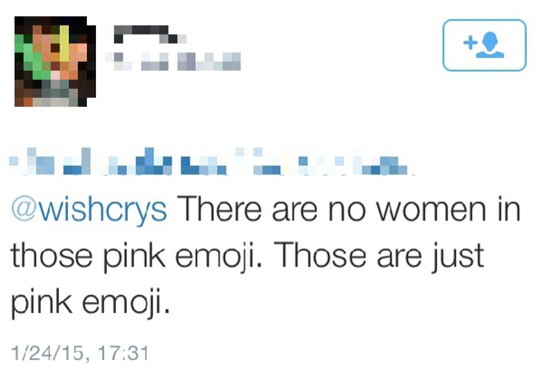 For instance, between Apple and Windows, gender and ethnicity got lost in translation. Apple’s pink-clad woman emoji shows up as a blue-clad man. The various ethnicities of the Apple emoji men are white-washed in Windows.
