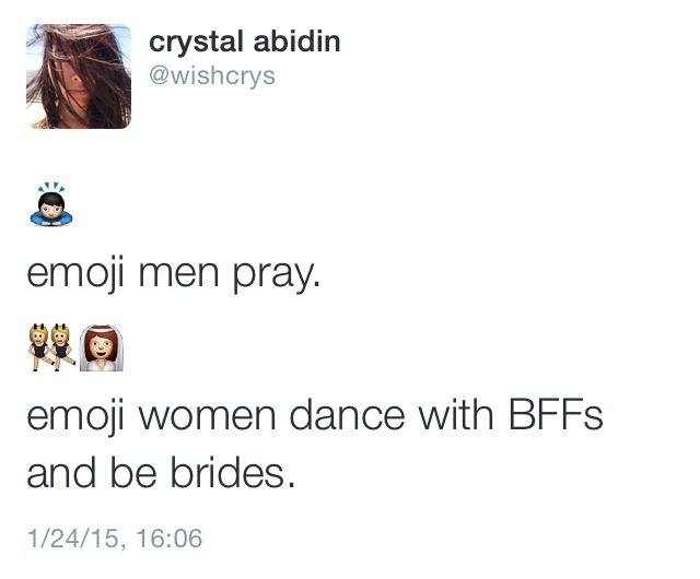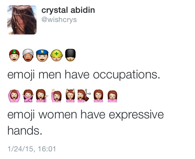 Emoji diversity is old news. The Unicode Consortium proposed recommendations for the interoperability of emoji across platforms in late 2014. Customizable ethnically-diverse emoji representations are on the way. Inter-platform emoji that get lost in translation even have dedicated op-ed pieces (h/t God of Internet culture, Gabriele, for the article). Emoji creative art is also all the rage, and I’ve been attempting to curate a list here for some time (please feel free to add to it).