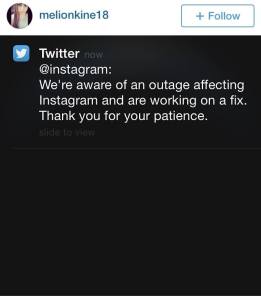 The next time such an outage sends you into a frenzy (Did I pay my bill? Is it just me? Is it my Internet Connection? Is Instagram REALLY down?!), just remember that you can check the status of the application here and here, and go for a walk outside. Or play computer games. Or eat out of your fridge. Idk, make your own decisions; I’m not your mother.