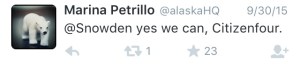 Others alluded to the 2014 documentary film, Citizenfour, directed by Laura Poitras who interviewed Snowden with reporter Glenn Greenwald.