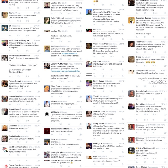 His verified Twitter account with a super boss handle, @Snowden, now boasts over 1.5 million followers.