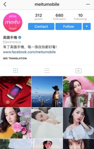 Most of Meitu’s photo app and smartphone branding features highly stylized images of beautiful scenery or photogenic people whose images can be enhanced with a combination of a good camera/smartphone and MeituXiuxiu literacies.
