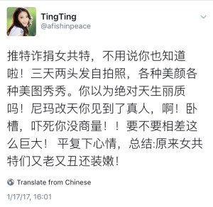 In the first tweet, the user is calling out women who frequently take selfies, excessively edit them with MeituXiuxiu, and proclaim that their beauty is natural. The implicit cultural norm is that it is perfectly fine to edit your photos with MeituXiuxiu, but shameful if you deny your use of digital artifice and attempt to pass off edited photos as natural beauty. There is no shame in full disclosure.