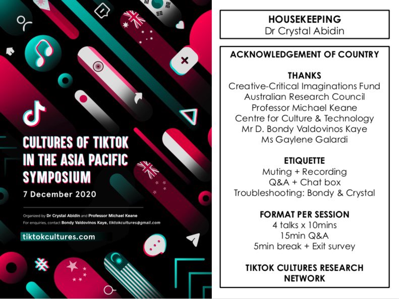 Thank you to everyone who attended the ‘Cultures of TikTok in the Asia Pacific’ Symposium! My organizing team and I are supremely relieved (tech didn’t fail us!) and grateful for everyone who made the time to share their research and tune in to the talks.