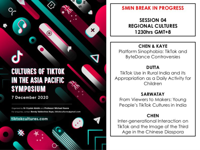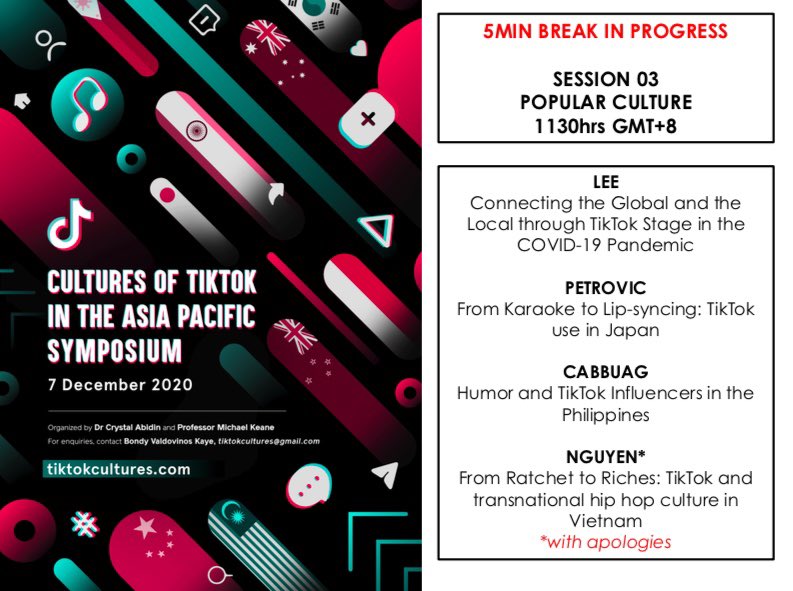 A selection of symposium talks will be mentored into peer reviewed journal articles in Q1-Q2 2021, featuring research from junior and early career scholars particularly from the Asia Pacific and Global South. Stay tuned to tiktokcultures.com for more updates.