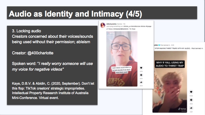 Point three focuses on locking audio, where TikTok creators who were concerned about their voices and sounds being used without their permission strategised over circumvention strategies: