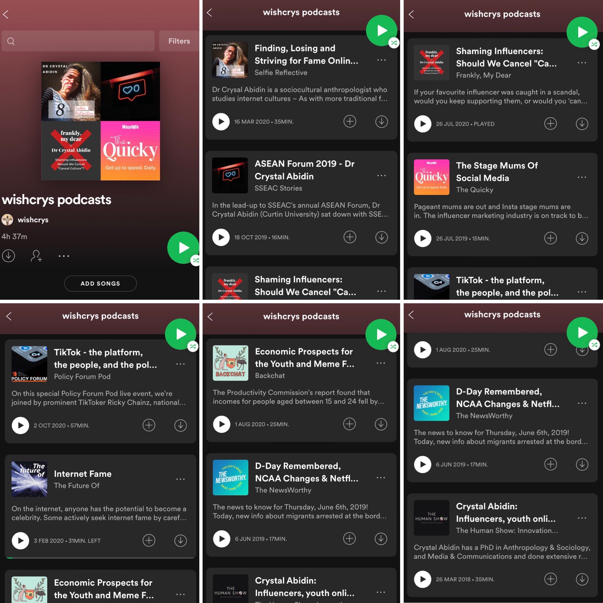Some of the podcasts I have guested on are now on Spotify. You can find them in a playlist titled ‘wishcrys podcasts‘. Features chats on influencer cultures, blogshops, online shame, call out culture, internet famous kids, TikTok youth cultures, memes, etc.