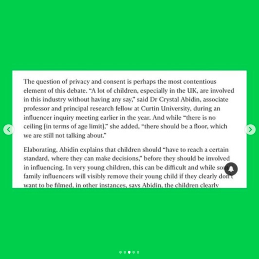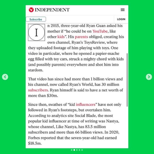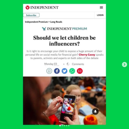 Read: “Should we let children be influencers?” Independent, 04 January 2022. <Link>