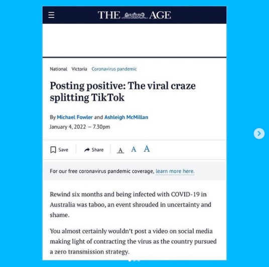 Read: “Posting positive: The viral craze splitting TikTok.” The Age, 04 January 2022. <Link>