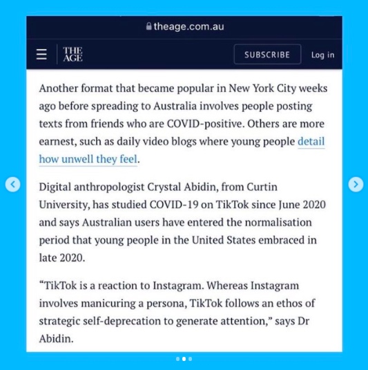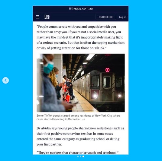 New press commentary in The Age, on pandemic posting patterns among young people on TikTok, and the intercontinental waves and shifts in communicative norms.