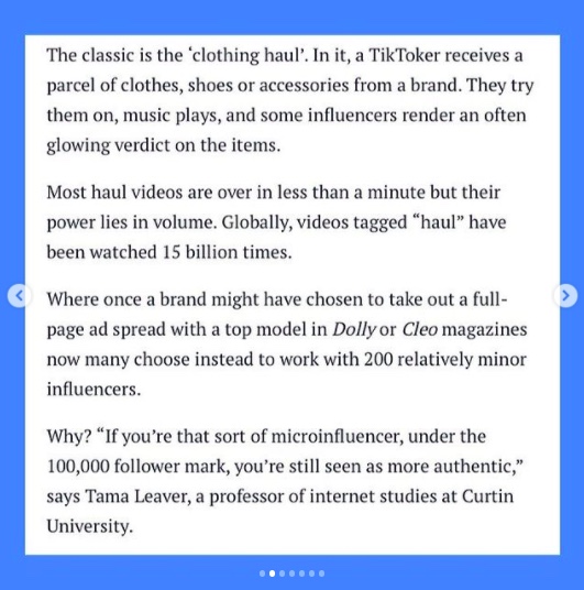 New press commentary in Sydney Morning Herald on TikTok hauls, corporate tokenism, and decoding what ‘authenticity’ signals for micro-influencers. With research commentary from yours truly, based on my forthcoming book TikTok and Youth Cultures. I can’t wait for this book to come out.