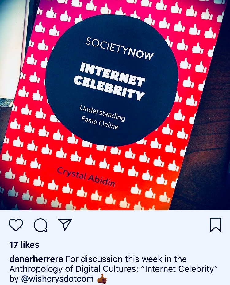 “Using examples from East Asia and the Western hemisphere, Abidin examines this broad notion of internet celebrity with a distinctly global lens… Internet Celebrity serves as a catalog of terms; each category and subcategory is fleshed out with a condensed history and, at times, ethnographic analysis.”