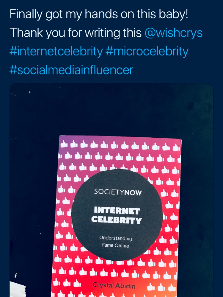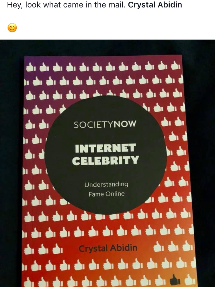 “Abidin’s writing demonstrated a balance of playfulness and seriousness in unpacking Internet zeitgeist… Suffice it to say that Abidin’s ability to create global frameworks to effectively study the multifaceted dimensions of Internet celebrity and explain them succinctly and clearly greatly surpassed my expectations of a scholarly work of this length.”