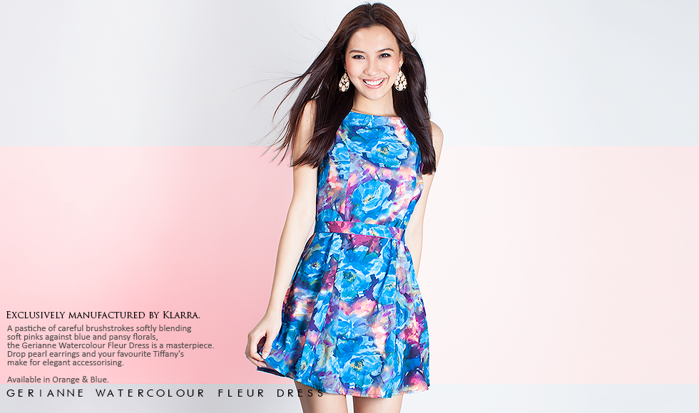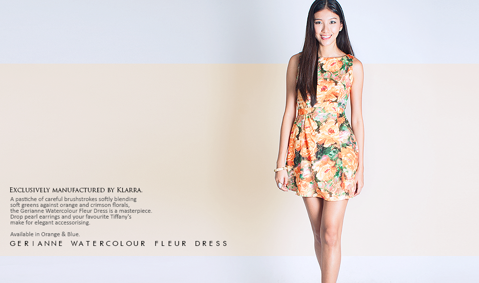 A pastiche of careful brushstrokes softly blending soft pinks against blue and pansy florals, the Gerianne Watercolour Fleur Dress is a masterpiece. Drop pearl earrings and your favourite Tifany’s make for elegant accessorising. Available in Orange & Blue.