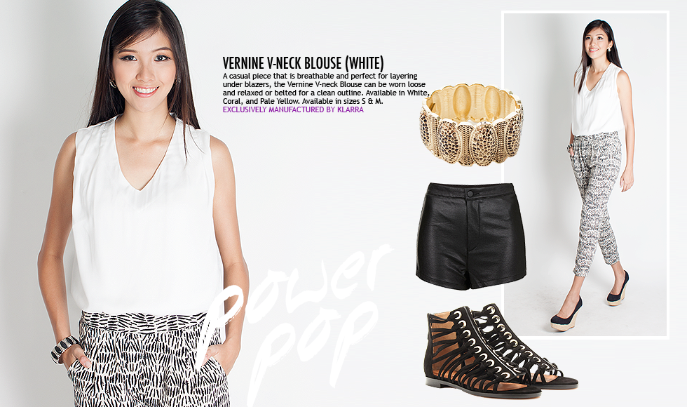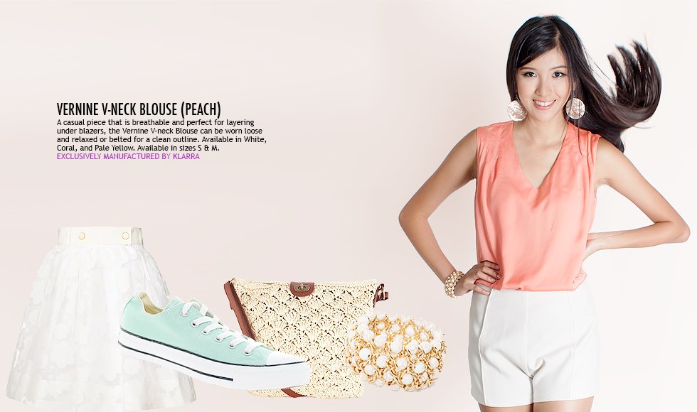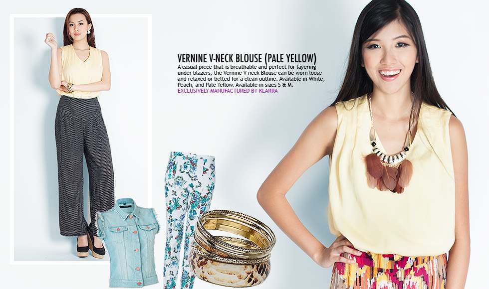 A casual piece that is breathable and perfect for layering under blazers, the Vernine V-neck Blouse can be worn loose and relaxed or belted for a clean outline. Available in White, Peach, and pale Yellow. Available in sizes S & M.