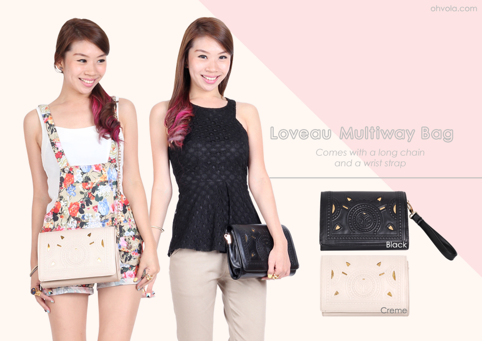 Fancy a versatile bag to complement your outfit rotations? Let the Loveau Multiway Bag fuel your wanderlust! With a detachable chain and strap, it transforms from a shoulder bag to a wristlet to a clutch in one simple click. Featuring two inner compartments, its gorgeous cut-out faux leather piece is accentuated by tailored motifs. Available in the staple Black and Creme, it makes for a convenient carry-all.