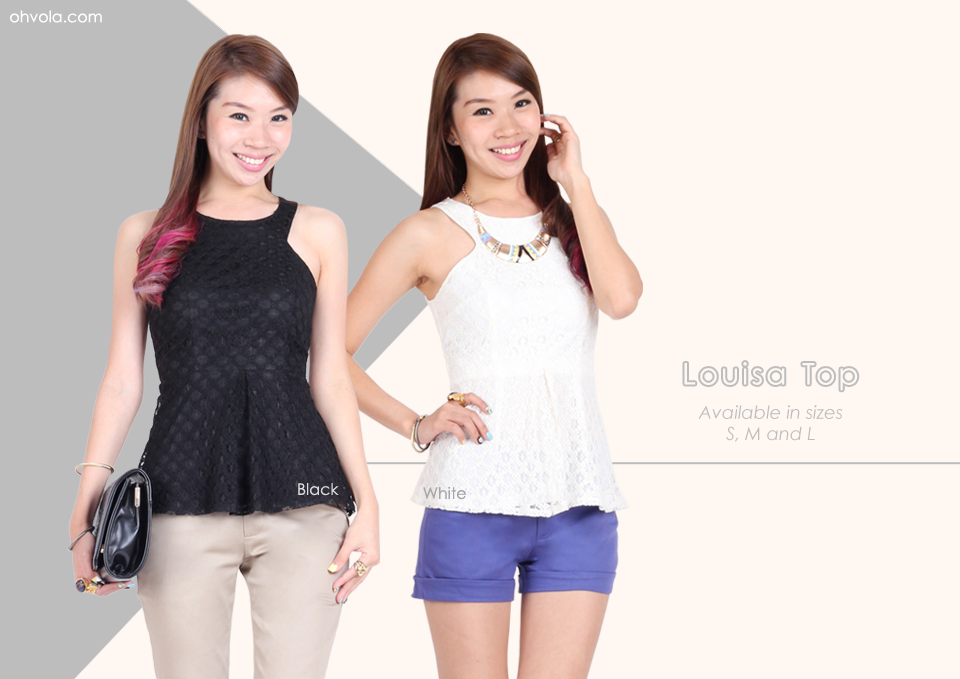 We are stirring up the latest fashion trends once again. Louisa spots a trendy racer cut in a flirtatious lace overlay fabric. Flaunt those toned arms and razor sharp shoulder blades with a slight peplum flare that is playfully feminine. Fully-lined and non-sheer, the top closes with a concealed full back zipper. Available in sizes S, M, L.