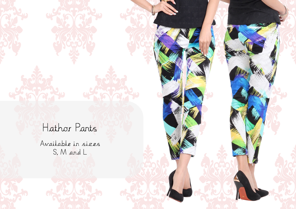 Now that we have perfected flattering tailored pants, here’s Hathor as the perfect pick-me-up with its abstract brush strokes and colour swatches. Constructed in soft linen for ease of movement, these slim-cut trousers close with a hook and zip closure. A subtle zipper slit at the ankle even avails allowance for fancy boots and Doc Mart’s for the fashionista in you! Available in sizes S, M, L.